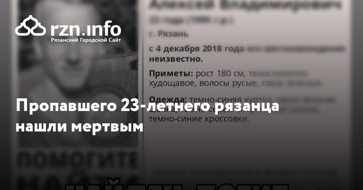 Пропавшего 23-летнего рязанца Алексея Шмакова нашли мертвым. Об этом вечером в субботу, 8 декабря, сообщили в поисково-спасательном отряде «Liza Alert Рязань».