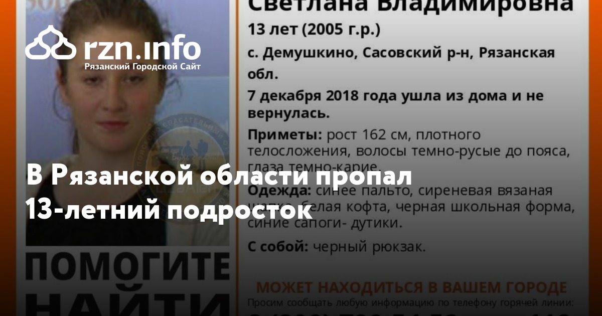 В Рязанской области пропал 13-летний подросток. Об этом сообщили в группе поисково-спасательного отряда «» «ВКонтакте».