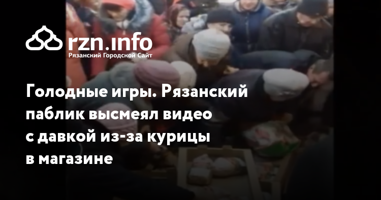 Паблик «Рязань безысходная» высмеял видео с давкой из-за курицы в городском магазине. Ролик смонтировали из появившихся в интернете кадров с рязанскими пенсионерами и фильма «Голодные игры».