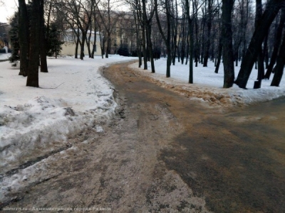 Работы по обработке тротуаров пескосоляной смесью будут проводиться днем в четверг, 15 февраля, на улицах Яхонтова, Семинарской, Каширина, Советской Армии, Новоселов, Островского, Стройкова, Западной, Крупской, Касимовского и Московского шоссе, Дубовой рощи, бульваре Победы.