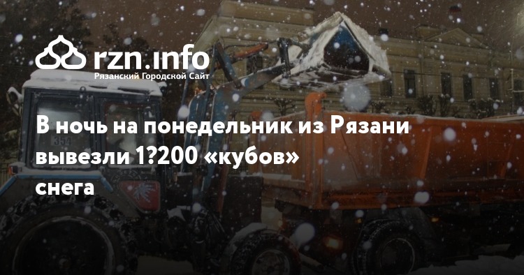 В ночь на понедельник, 19 февраля, из Рязани вывезли 1 200 «кубов» снега. Об этом сайт администрации города.