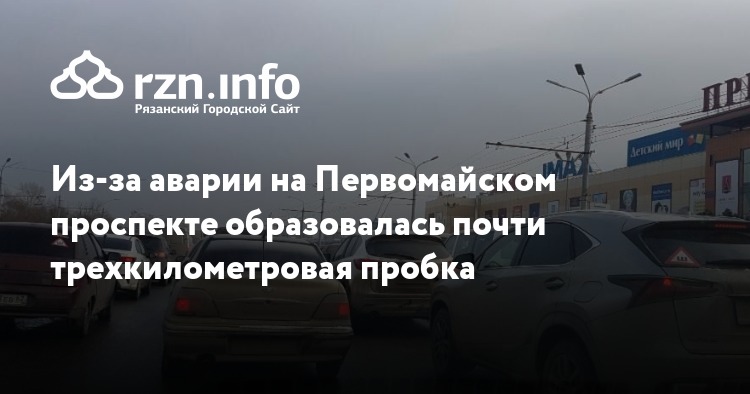Из-за аварии на Первомайском проспекте в Рязани образовалась почти трехкилометровая пробка. Соответствующее фото опубликовали в группе «Подслушано у водителей Рязани» «ВКонтакте».