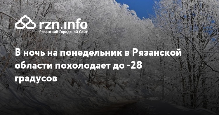 В ночь на понедельник, 26 февраля, в Рязанской области похолодает до -28 градусов. Прогноз погоды на сайте регионального ГУ МЧС.