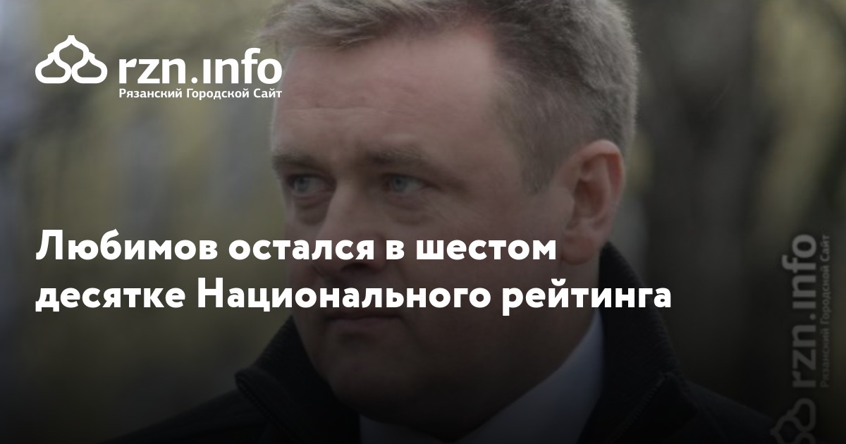 Рязанский губернатор Николай Любимов занял 61-е место в Национальном рейтинге глав регионов за январь-февраль 2018 года. Список опубликовал Центр информационных коммуникаций «Рейтинг» во вторник, 27 февраля. За четыре месяца он потерял одну позицию.