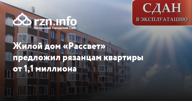 Жилой дом «Рассвет» предложил рязанцам квартиры от 1,1 миллиона
