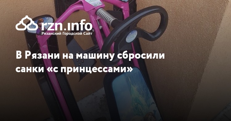В Рязани на машину сбросили детские санки с героинями мультфильма «Холодное сердце». Фотографии опубликовали в группе «Подслушано у водителей в Рязани».