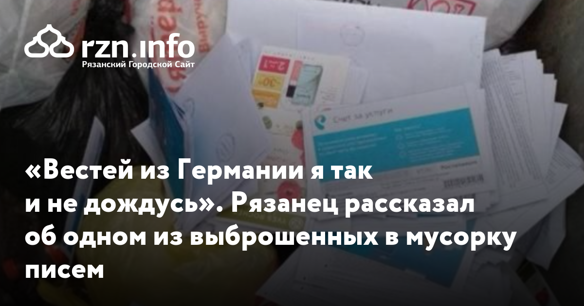 «Ждал письма из-за границы. Жаль конечно, что ничего оттуда уже не прочесть. Вчера друг увидел в ленте Instagram фото с письмами в мусорке и сразу позвонил. Ну, у меня нет времени ходить выяснять — там ничего особо ценного нет. Выходит письма из Германии я так и не дождусь», — отметил мужчина в беседе с корреспондентом RZN.info.
