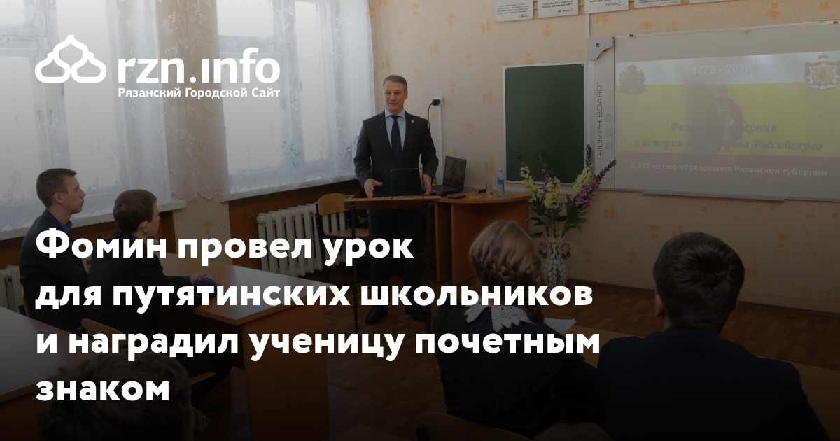 Фомин провел урок для путятинских школьников и наградил ученицу почетным знаком