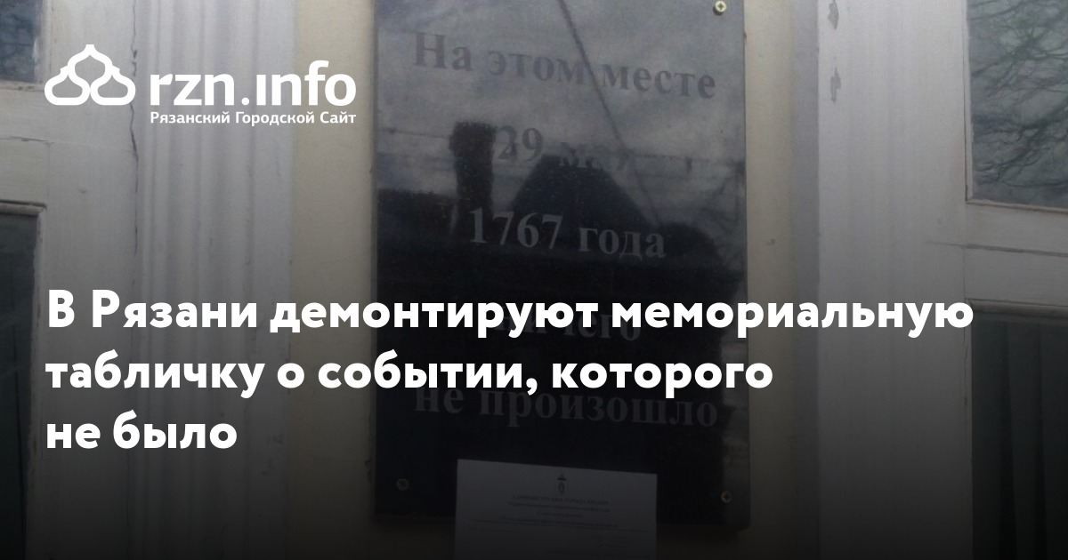 В Рязани демонтируют мемориальную табличку о событии, которого не было