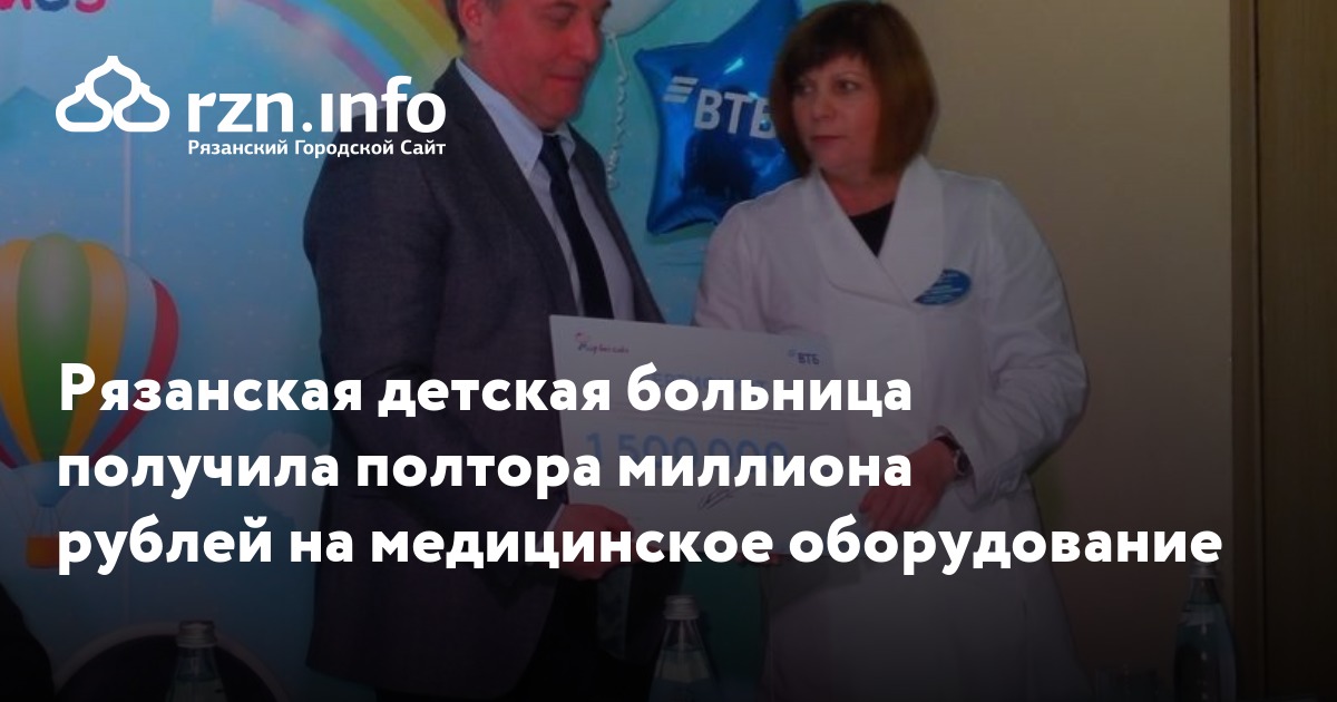Рязанская областная детская больница получила полтора миллиона рублей на медицинское оборудование. Об этом пишет издательство «Пресса».