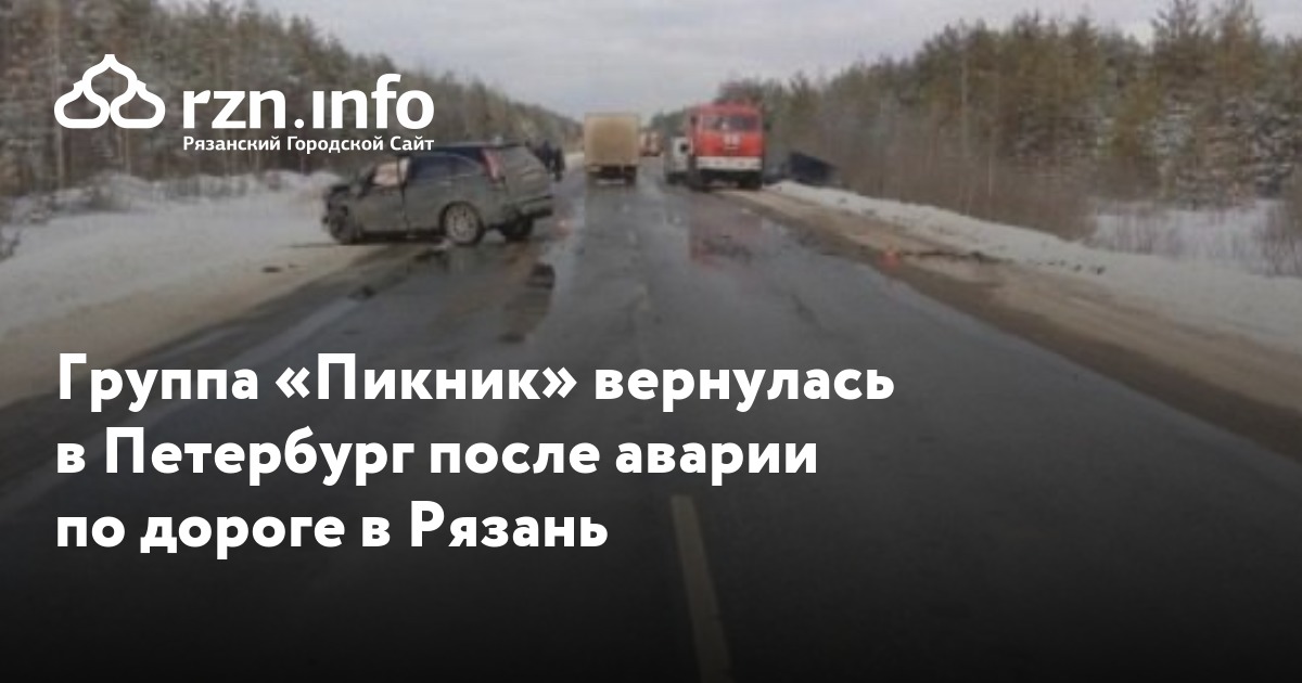 Группа «Пикник» в полном составе вернулась в Санкт-Петербург после аварии по дороге в Рязань. Информация об этом на сайте коллектива.