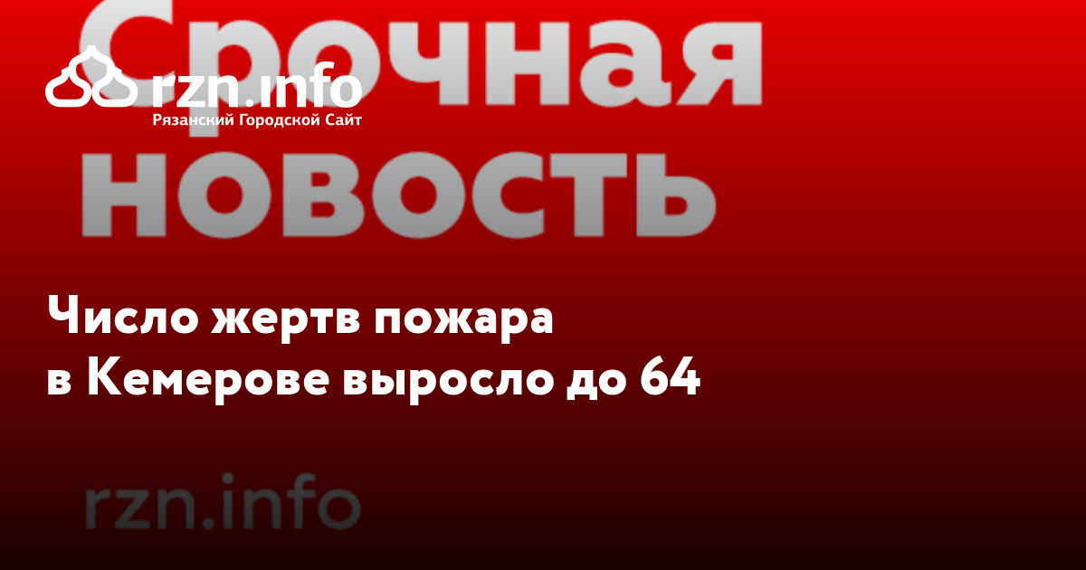 Число жертв пожара в кемеровском ТЦ выросло до 64, передает «». Глава МЧС Владимир Пучков заявил, что это «окончательная цифра».