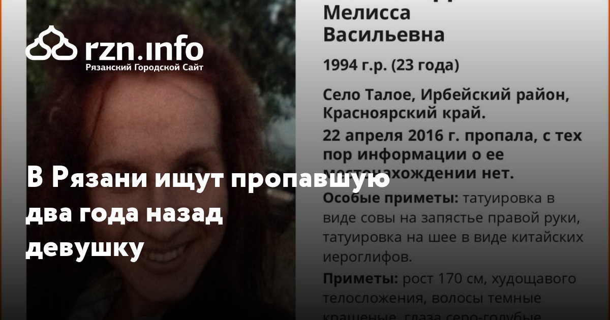 В Рязанской области ищут 23-летнюю Мелиссу Пенклиди, которая пропала 22 апреля 2016 года. Информацию опубликовали в группе поисково-спасательного отряда «».