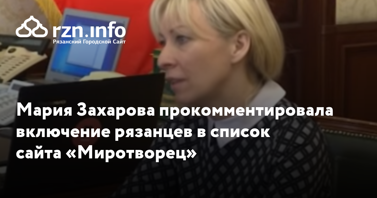 Мария Захарова прокомментировала включение рязанских вице-губернатора Игоря Грекова и сенатора Игоря Морозова в список украинского сайта «Миротворец». Директор Департамента информации и печати МИД России приезжала в Рязань в понедельник, 16 апреля, сообщил сайт регионального правительства.