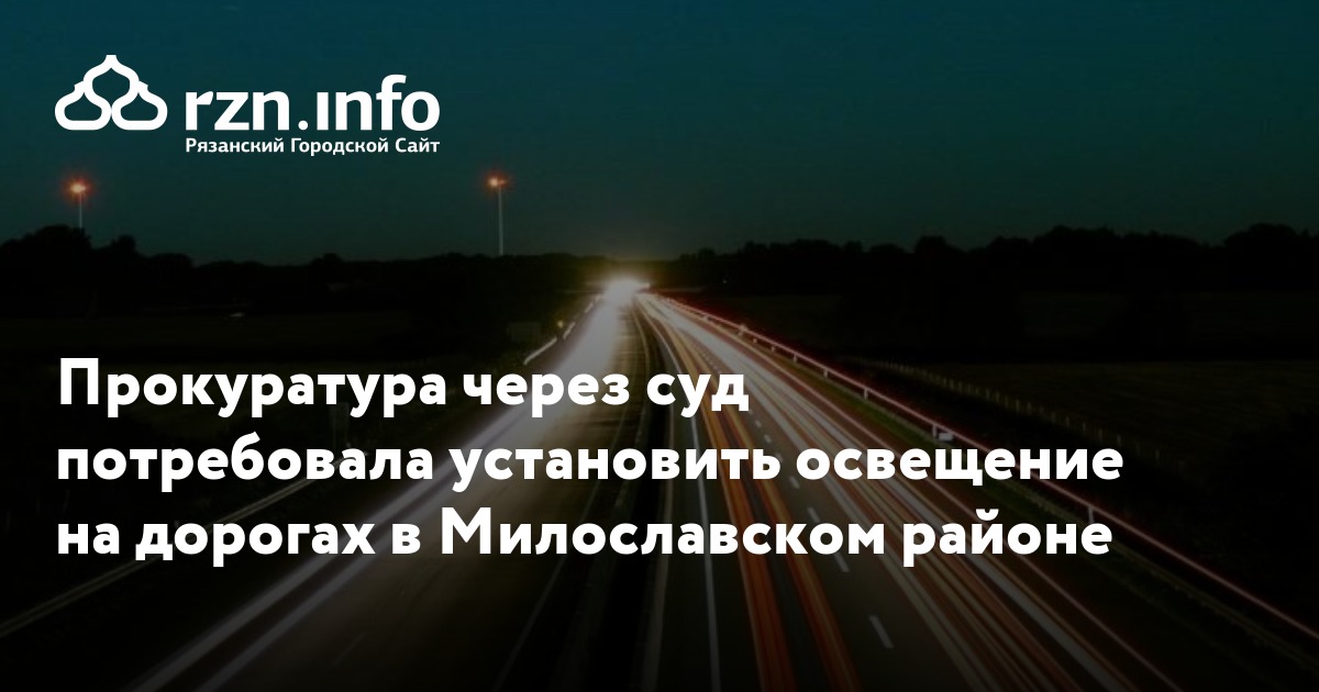 Прокуратура через суд потребовала установить освещение на дорогах в Милославском районе. Об этом сообщил надзорного органа.