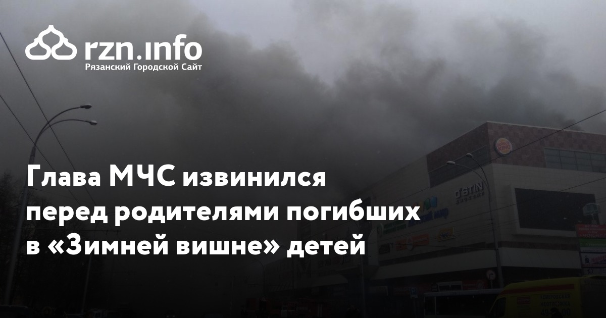 Глава МЧС Владимир Пучков извинился перед родителями погибших в «Зимней вишне» детей. По его словам, трагедия в кемеровском ТЦ должна «для всех послужить уроком», передает «».