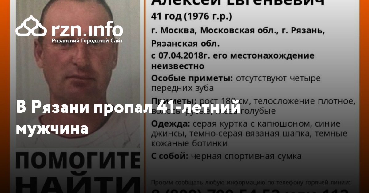 В Рязани пропал 41-летний мужчина