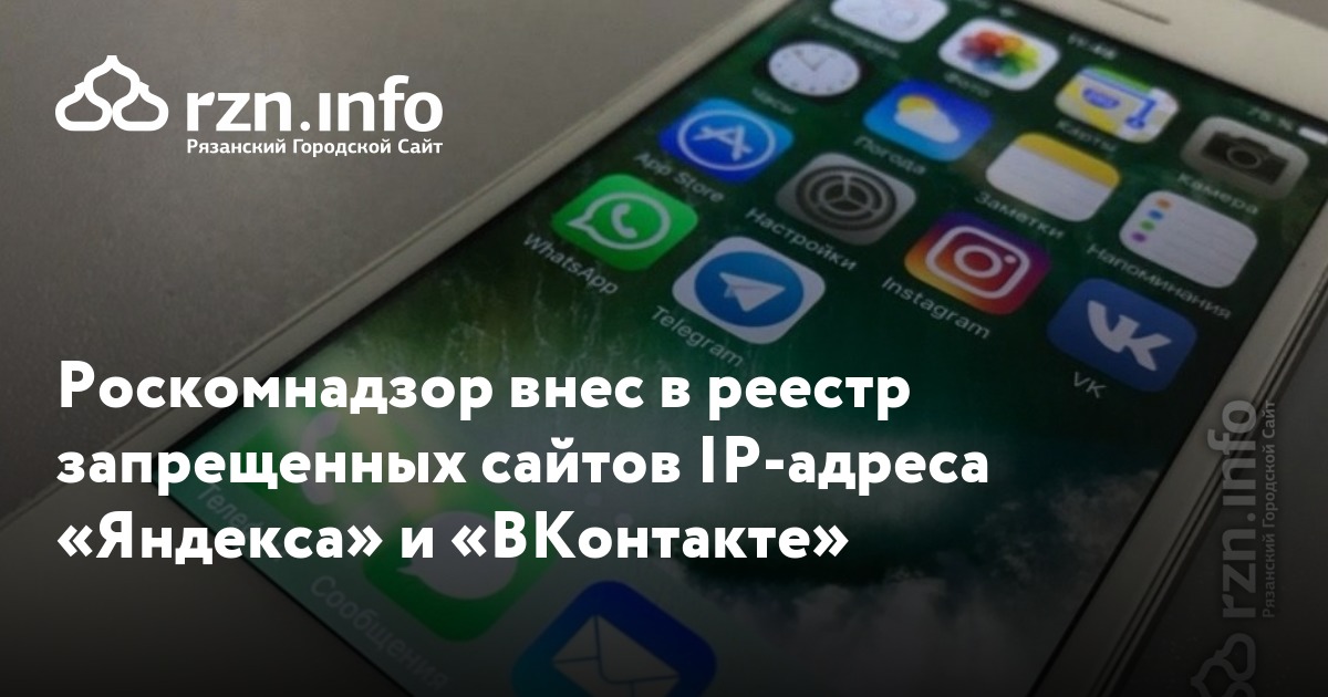 Роскомнадзор внес в реестр запрещенных сайтов IP-адреса «Яндекса», «ВКонтакте» и «Одноклассников». В реестре также оказались адреса, принадлежащие Facebook, Twitter, Yahoo и Liveinternet, передает «».