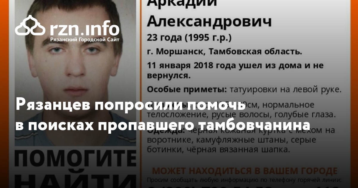 23-летний Лукунин Аркадий Александрович 11 января 2018 года вышел из дома в Моршанске Тамбовской области, и до сих пор о его местонахождении ничего неизвестно.