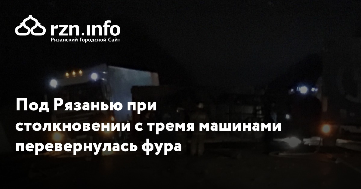 Под Рязанью при столкновении с тремя машинами перевернулась фура