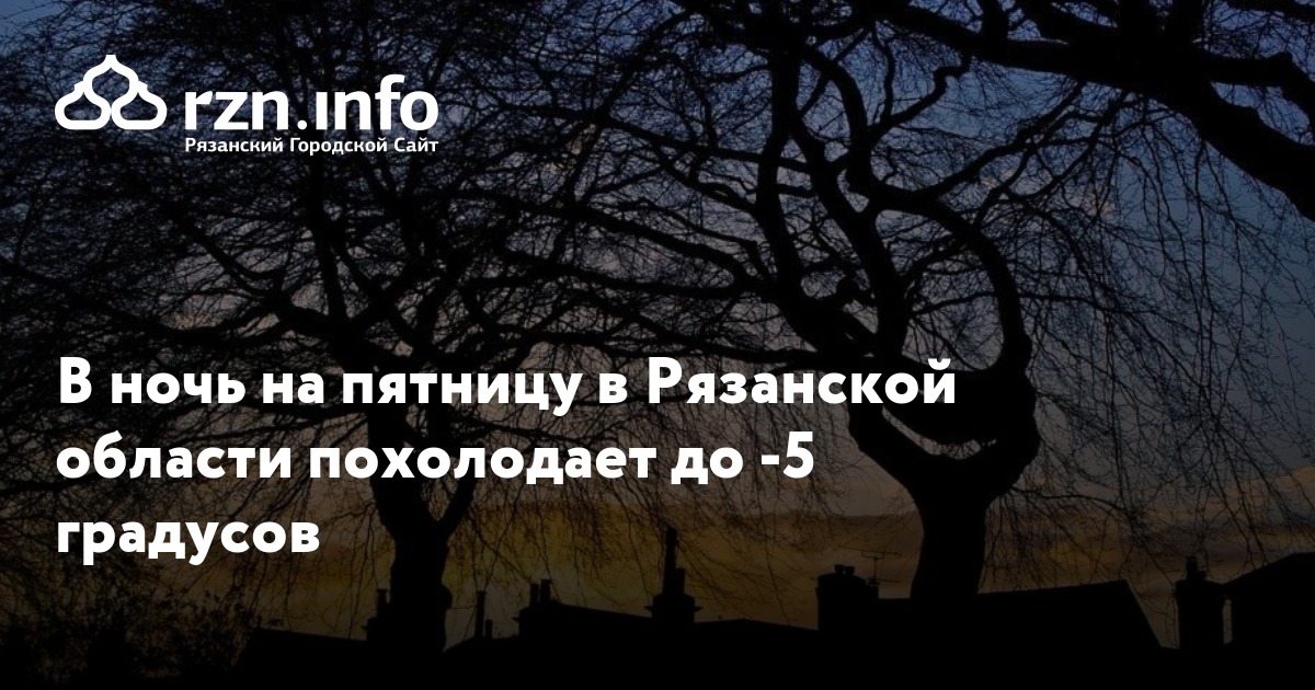 В ночь на пятницу в Рязанской области похолодает до -5 градусов. Прогноз погоды опубликован на сайте регионального ГУ МЧС.