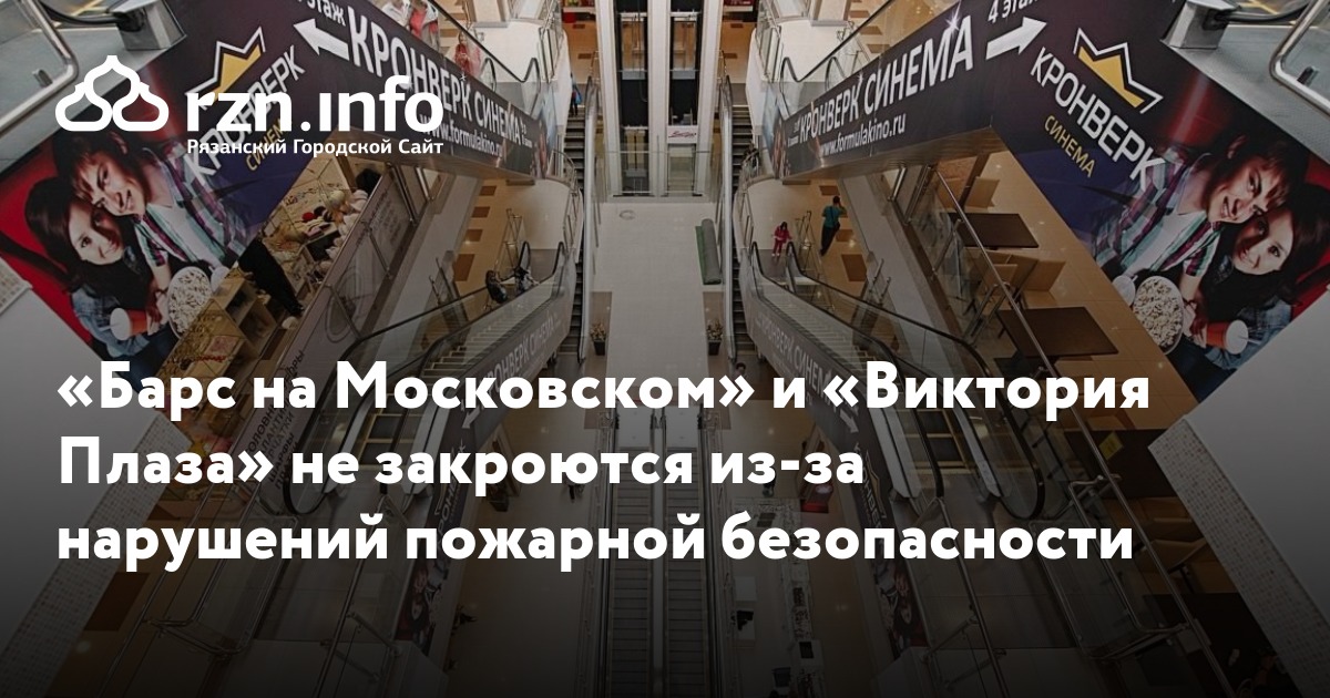«Барс на Московском» и «Виктория плаза» не станут закрывать из-за нарушений пожарной безопасности. Об этом сообщили RZN.info в руководстве торговых центров.