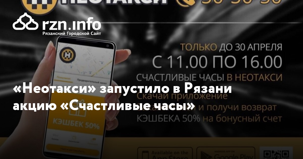 «Счастливые часы» — это время с 11:00 до 16:00. В этот период рязанцам нужно скачать приложение «НеоТакси» и заказать машину. После этого они получат возврат 50% средств на бонусный счет, где один бонус равен одному рублю.