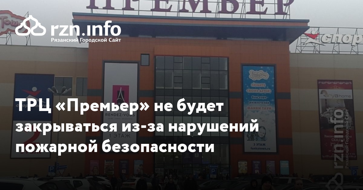 ТРЦ «Премьер» не будет закрываться из-за нарушений пожарной безопасности. Об этом в пятницу, 6 апреля, рассказали RZN.info в администрации торгово-развелекательного центра.