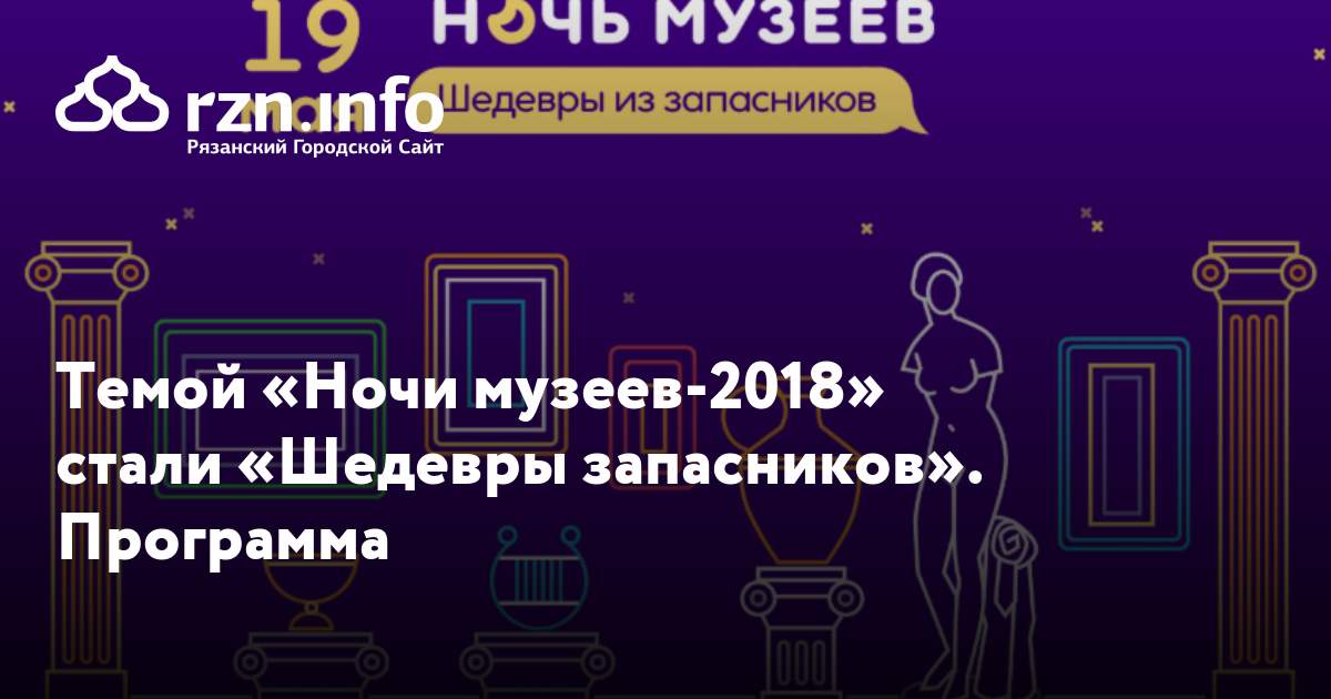 В 2018 году акция «Ночь музеев» пройдет в Рязани в ночь с 19 на 20 мая. Тема акции «Шедевры из запасников».
