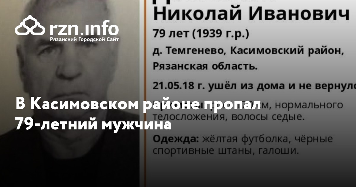 В деревне Темгенево Касимовского района пропал 79-летний Николай Демьянов. Он ушел из дома в понедельник, 21 мая, около 14:00. С тех пор его никто не видел, сообщили в группе поисково-спасательного отряда «Liza Alert Рязань».