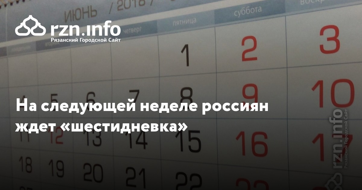 На следующей неделе россиян ждет «шестидневка»