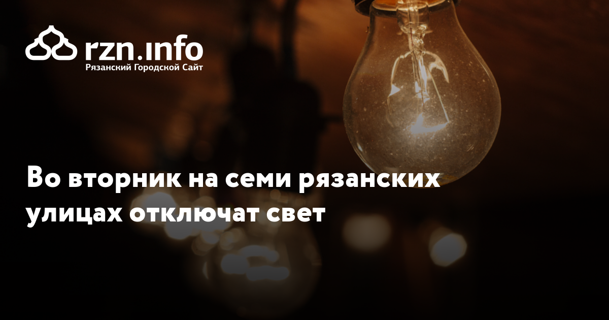 Во вторник, 29 мая, на семи рязанских улицах отключат свет. Об этом сообщил горадминистрации.