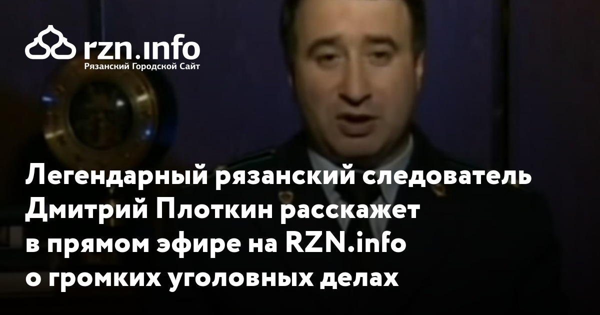 Легендарный рязанский следователь Дмитрий Плоткин расскажет в прямом эфире на RZN.info о громких резонансных делах, раскрытых при его участии и ответит на вопросы читателей. Плоткин с 1982 года работал следователем в Скопине, с 1985 года переведен в Рязань сначала старшим следователем, потом старшим следователем по особо важным делам, с 2007 по 2016 годы был старшим помощником прокурора Рязанской области.