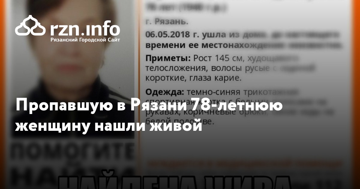 78-летнюю Нину Попову, пропавшую в Рязани, нашли живой. Об этом сообщила группа поисково-спасательного отряда «».
