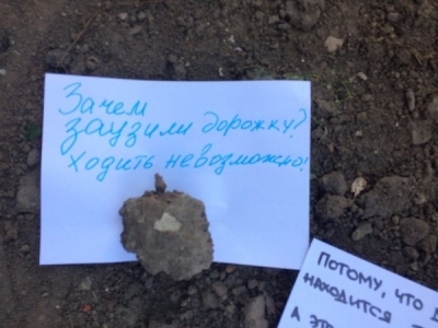 После благоустройства двора у дома №16 по улице МОГЭС у жителей появился необычный чат. Все началось с дворовой тропинки: один из рязанцев возмутился, что дорожку заузили и написал это на листе бумаги, оставил его на дороге, прижав куском земли.
