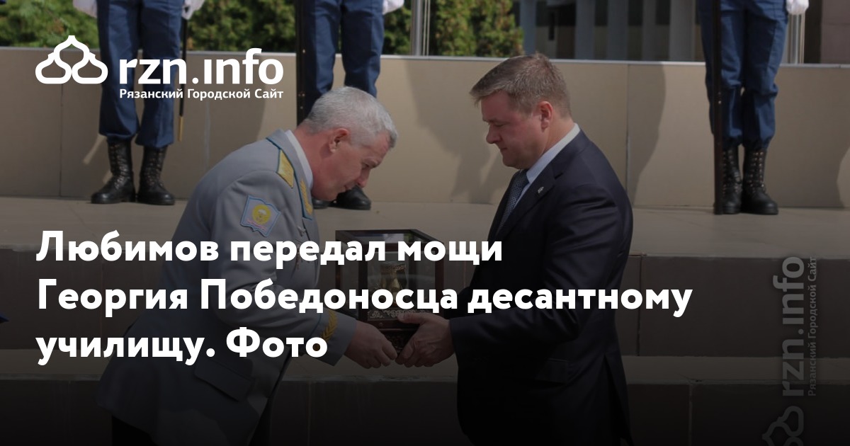 «Под девизом „Никто, кроме нас“ рязанские выпускники-десантники внесли огромный вклад в страницы нашей общей истории. Они всегда там, где трудно. Недавно, в честь участия в параде Победы в Москве, я передал училищу икону Георгия Победоносца. Сегодняшний дар — частица мощей великомученика будет храниться в строящемся храме на территории учебного заведения. Это станет символом небесного покровительства десантным войскам», — сказал губернатор.