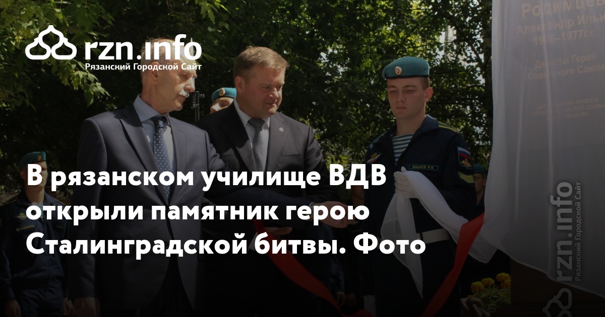 В День России, 12 июня, в рязанском училище ВДВ открыли бюст герою Сталинградской битвы генерал-полковнику Александру Родимцеву. На мероприятии были его сын Илья Родимцев, глава региона Николай Любимов и начальник училища Алексей Рагозин.