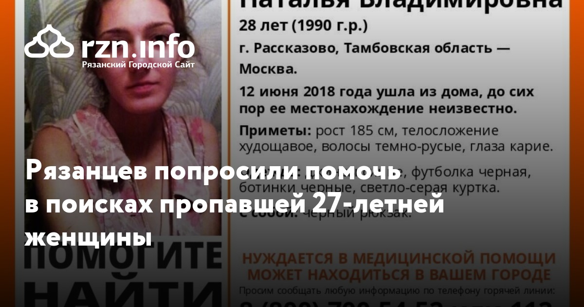 Рязанцев попросили помочь в поисках пропавшей 27-летней женщины