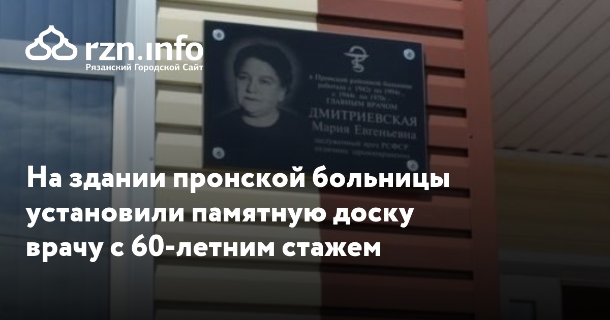 На здании пронской больницы установили памятную доску заслуженному врачу РСФСР Марии Дмитриевской, которая проработала в медицине 60 лет. Об этом пишет издательство «Пресса».