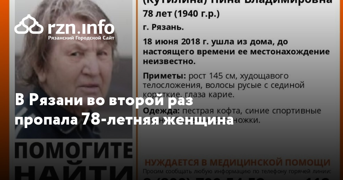 В Рязани во второй раз пропала 78-летняя женщина. Об этом сообщили в группе поисково-спасательного отряда «» «ВКонтакте».