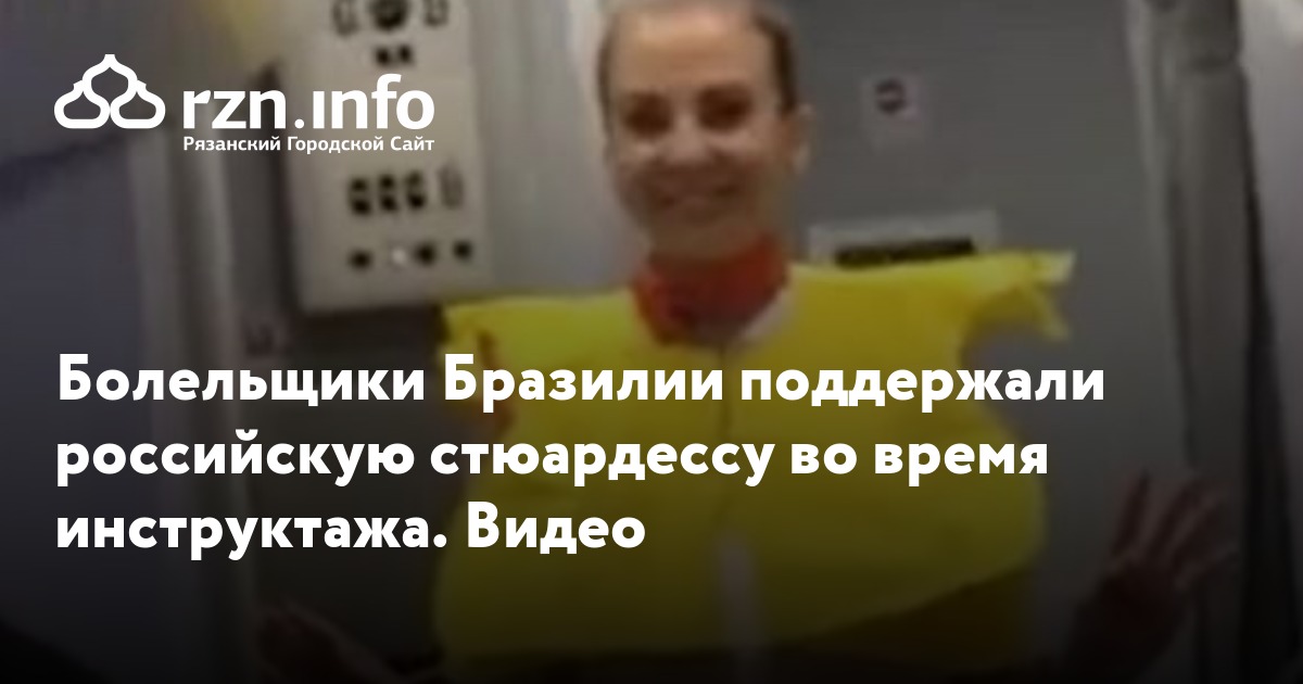 Болельщики сборной Бразилии поддержали российскую стюардессу, которая проводила инструктаж в салоне самолета. Видео произошедшего опубликовал .