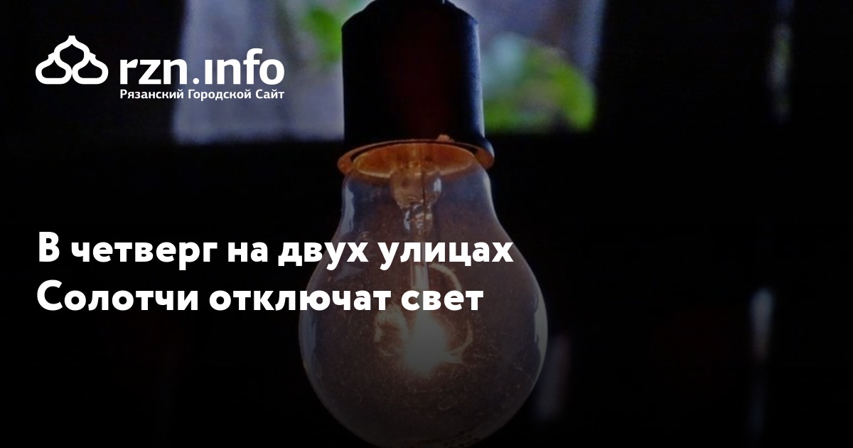 В четверг, 21 июня, на двух улицах Солотчи отключат свет. Об этом сообщил мэрии.