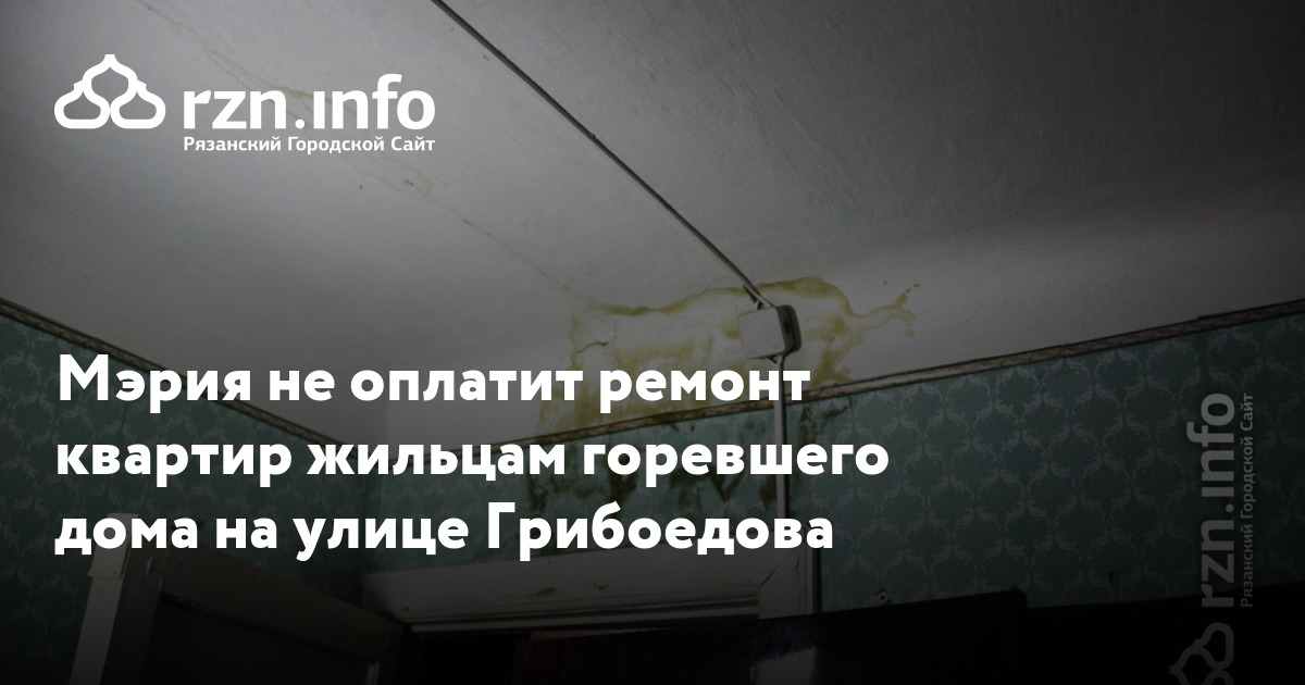 Мэрия не оплатит ремонт квартир жильцам горевшего дома на улице Грибоедова. Об этом RZN.info рассказал начальник управления энергетики и ЖКХ Игорь Ковалев.