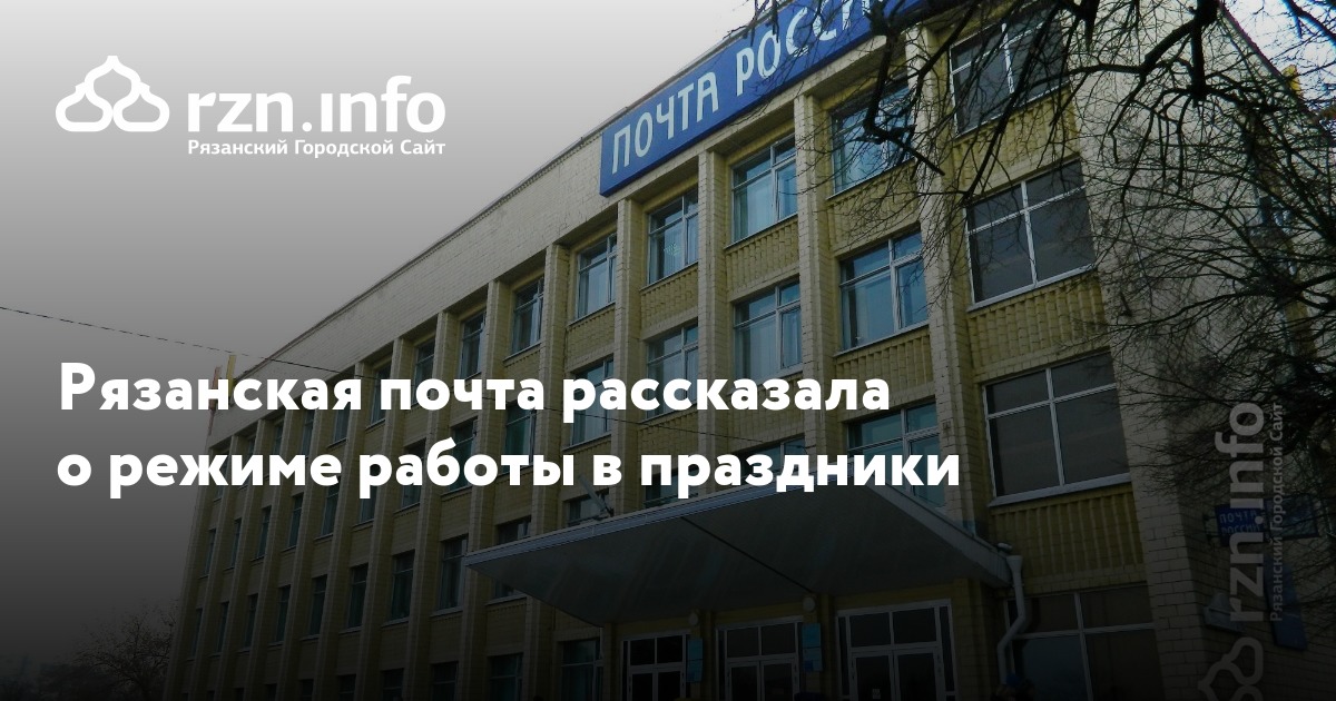 Главный почтамт Рязани в субботу будет открыт с 08:00 до 18:00, в понедельник — с 8:00 до 17:00.