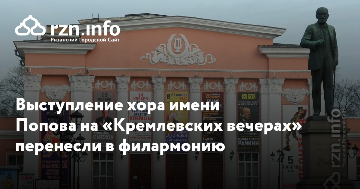 Выступление академического хора имени Попова, а рамках «Кремлевских вечеров» перенесли в зал филармонии из-за погодных условий. Начало в 19:00.