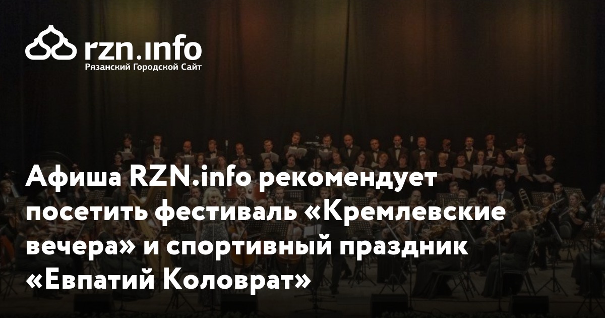 В клубе Svoboda 10 июня свое 29-летие отпразднует легендарная панк-группа Purgen. Рязанский музыкальный театр приглашает всех желающих 12 июня на традиционный оркестровый концерт. А на площади Ленина в честь Дня России состоится спортивный фестиваль «Евпатий Коловрат».