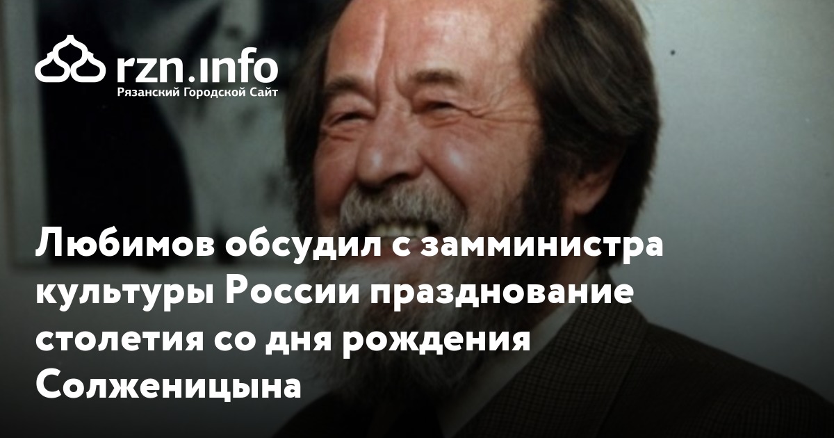 Николай Любимов обсудил с замминистра культуры России Сергеем Обрывалиным празднование столетия со дня рождения Александра Солженицына в Рязанской области. Об этом сайт регионального правительства.