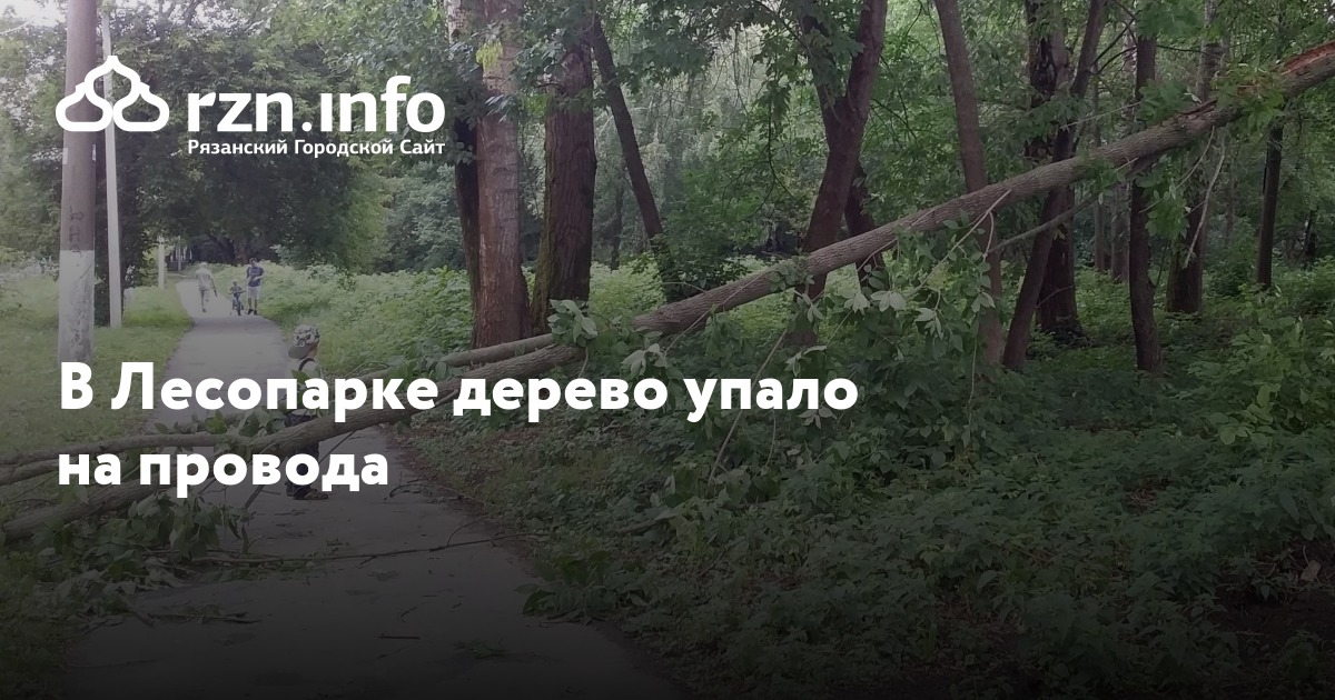 В рязанском Лесопарке во время ливня дерево упало и повисло на проводах. Об этом в группе «Народная Рязань» во «ВКонтакте» сообщил очевидец.