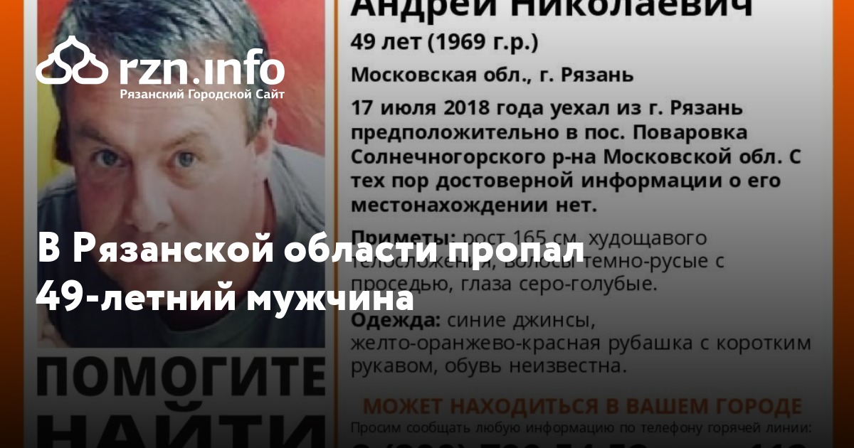 Андрей Николаевич Титов 1969 года рождения 17 июля 2018 года уехал из Рязани, предположительно, в поселок Поваровка Солнечногорского района Московской области. С тех пор его местонахождение неизвестно.