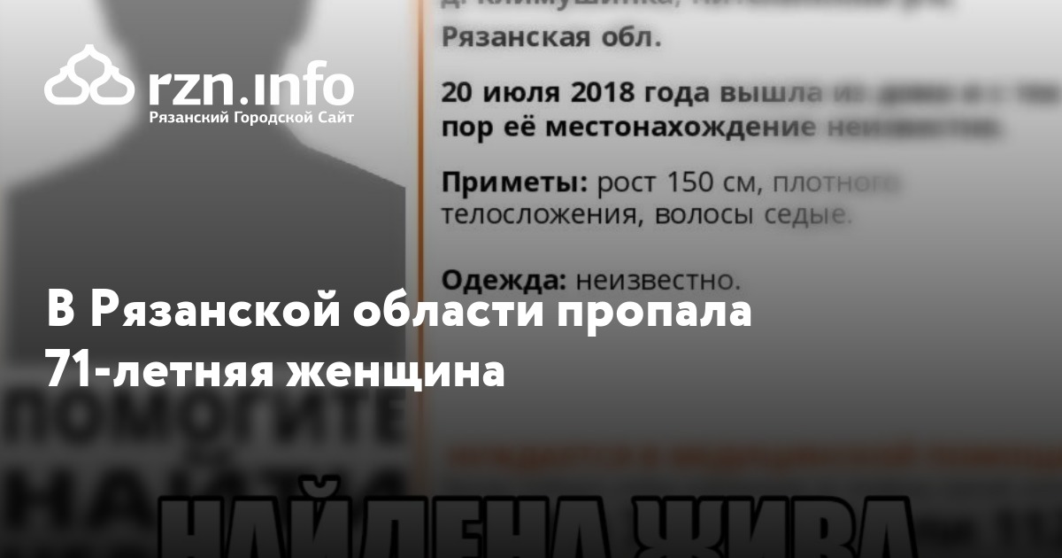 В Рязанской области пропала 71-летняя женщина. Об этом сообщил добровольный поисково-спасательный отряд «».
